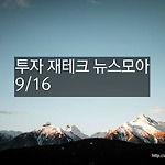 투자 재테크 뉴스모아 9/16 2019년 9월 16일 (월) [개장전 주요이슈점검] ● 뉴욕증시, 9/13(현지시간) 美/中 무역협상 낙관론 속 최고치 부담 등에 혼조 마감… 다우 +37.07(+0.14%) 27,219.52, 나스닥 -17.75(-0.22%) 8,176.72, S&P500 3,007.39(-0.07%), 필라델피아반도체 1,605.65(-0.32%) ● 국제유가($,배럴), 초과 공급 우려 등에 소폭 하락… WTI -0.24(-0.44%) 54.85, 브렌트유 -0.16(-0.26%) 60.22 ● 국제금($,온스), 양호한 美 경제지표 등에 하락... Gold -7.90(-0.52%) 1,499.50 ● 달러 index, 최근 상승에 따른 부담 속 하락... -0.05(-0.05%) ..